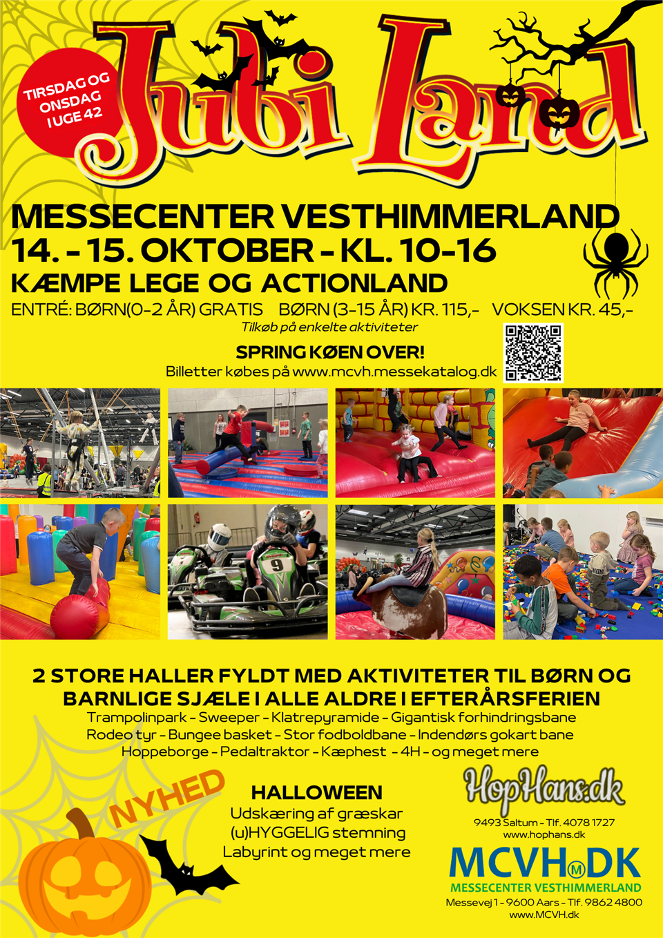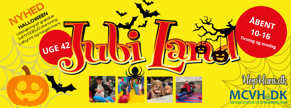 Mange og nye spændende aktiviteter til Jubi-Land i efterårsferien den 14. - 15. oktober 2025 i uge 42 igen med HopHans.dk.