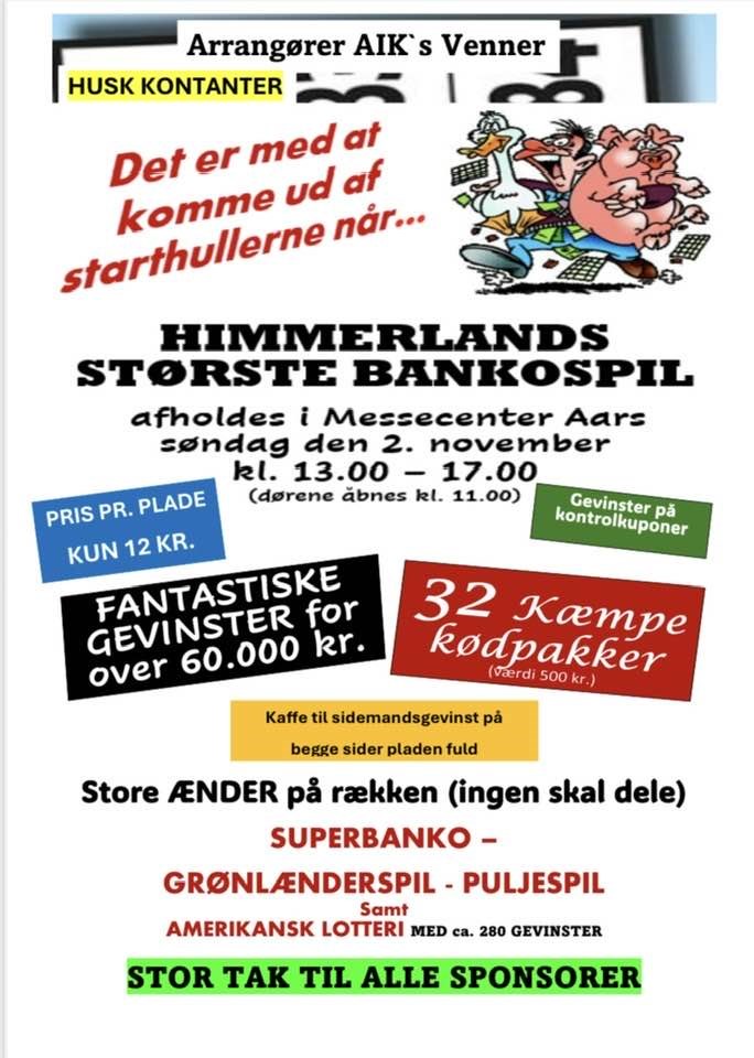 Kom med til Himmerlands største bankospil med fantastiske gevinster søndag den 2. november i Messecenter Vesthimmerland
