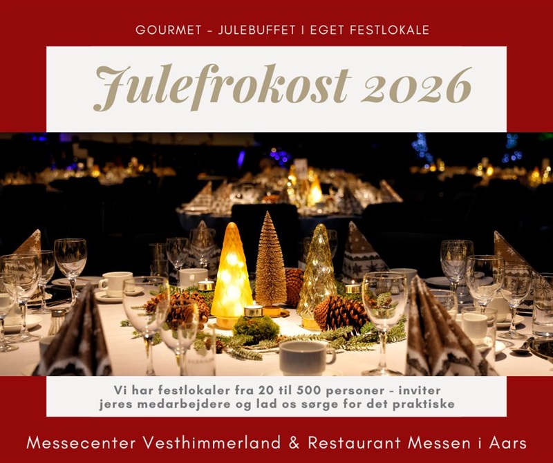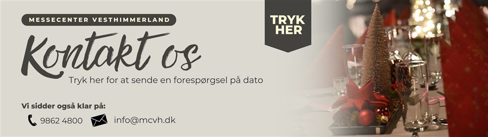 Ønsker i af afholde jeres julefrokost Messecenter Vesthimmerland så ring på tlf.: 9862 4800 eller skriv til eller kig ind, så tager vi en snak om jeres næste fest og lavet et 100% uforpligtende tilbud.