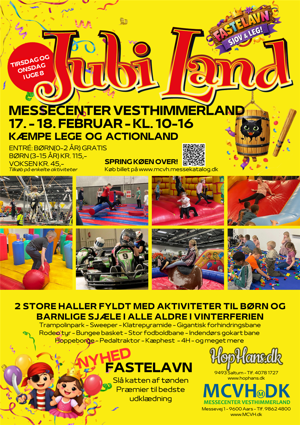 Mange og nye spændende aktiviteter til Jubi-Land i vinterferien den 17. - 18. februar 2026 i uge 8 igen med HopHans.dk.