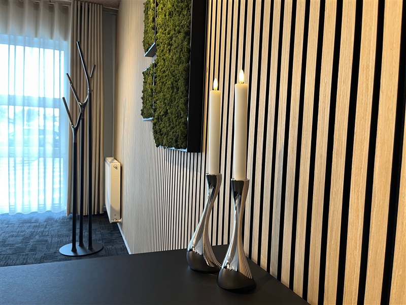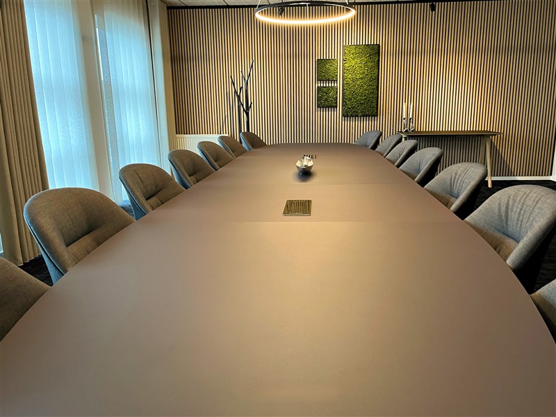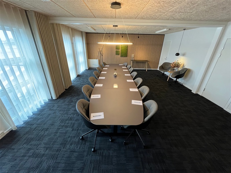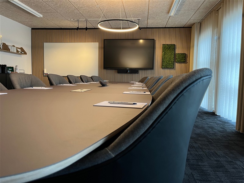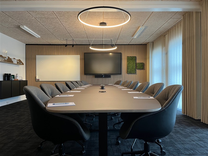 • Elegant design: Vores mødelokale er designet med fokus på elegance og funktionalitet, hvilket skaber en professionel og inspirerende atmosfære for op til 16 personer.
