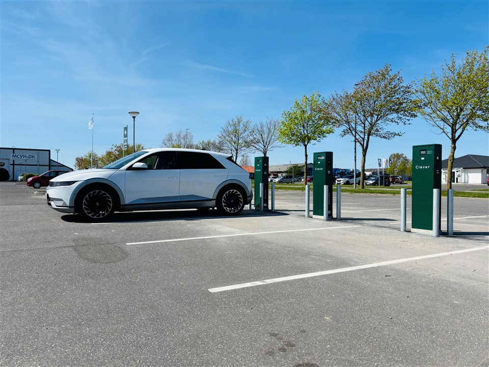 Ladepunkterne er strategisk placeret på vores parkeringsplads i kort gåafstand til indgangen.